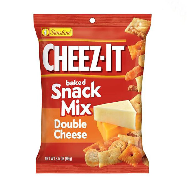 - Cheez-It Snack Mix Double Cheese is the ideal companion for lunches, and busy, on-the-go moments; Each handful provides a satisfying, cheesy crunch with every bite.